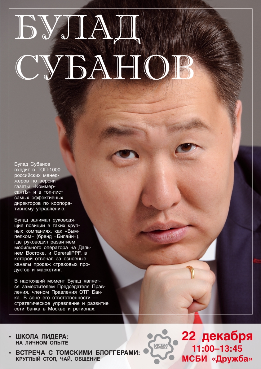 Булад Субанов входит в ТОП-1000 российских менеджеров по версии газеты «КоммерсантЪ» и и в топ-лист самых эффективных директоров по корпоративному управлению.