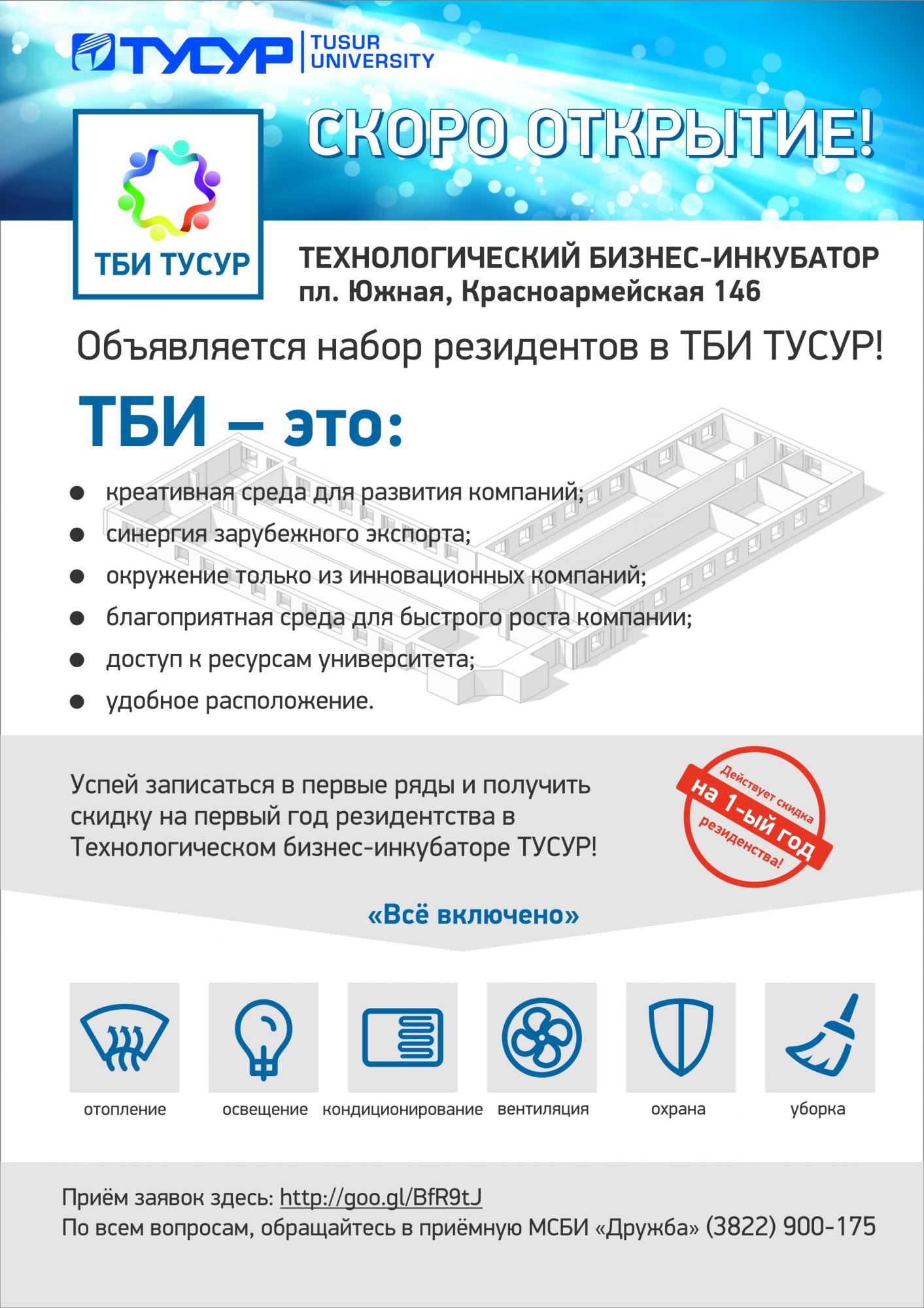 Друзья, объявляется набор резидентов в Технологический бизнес-инкубатор ТУСУР